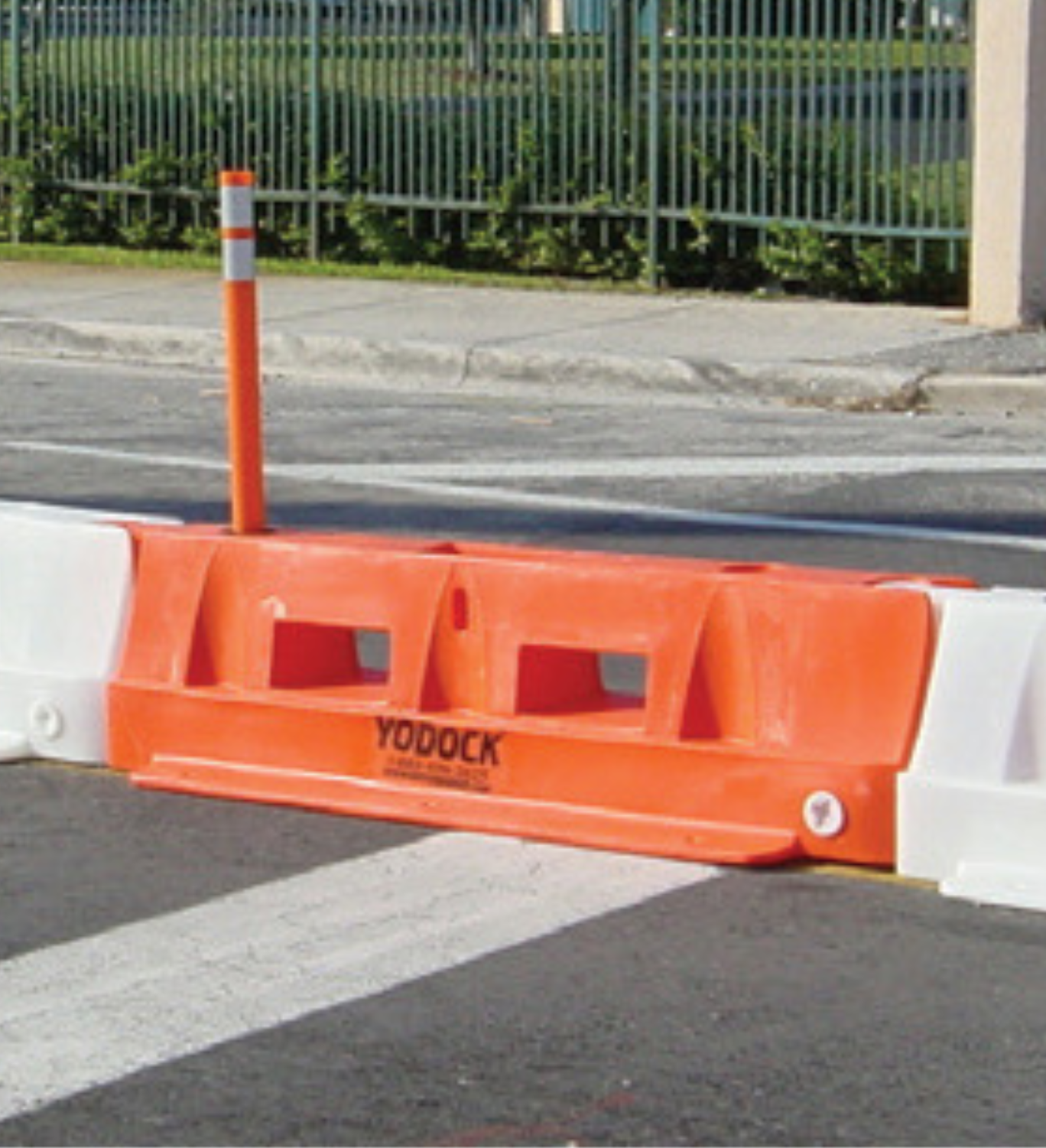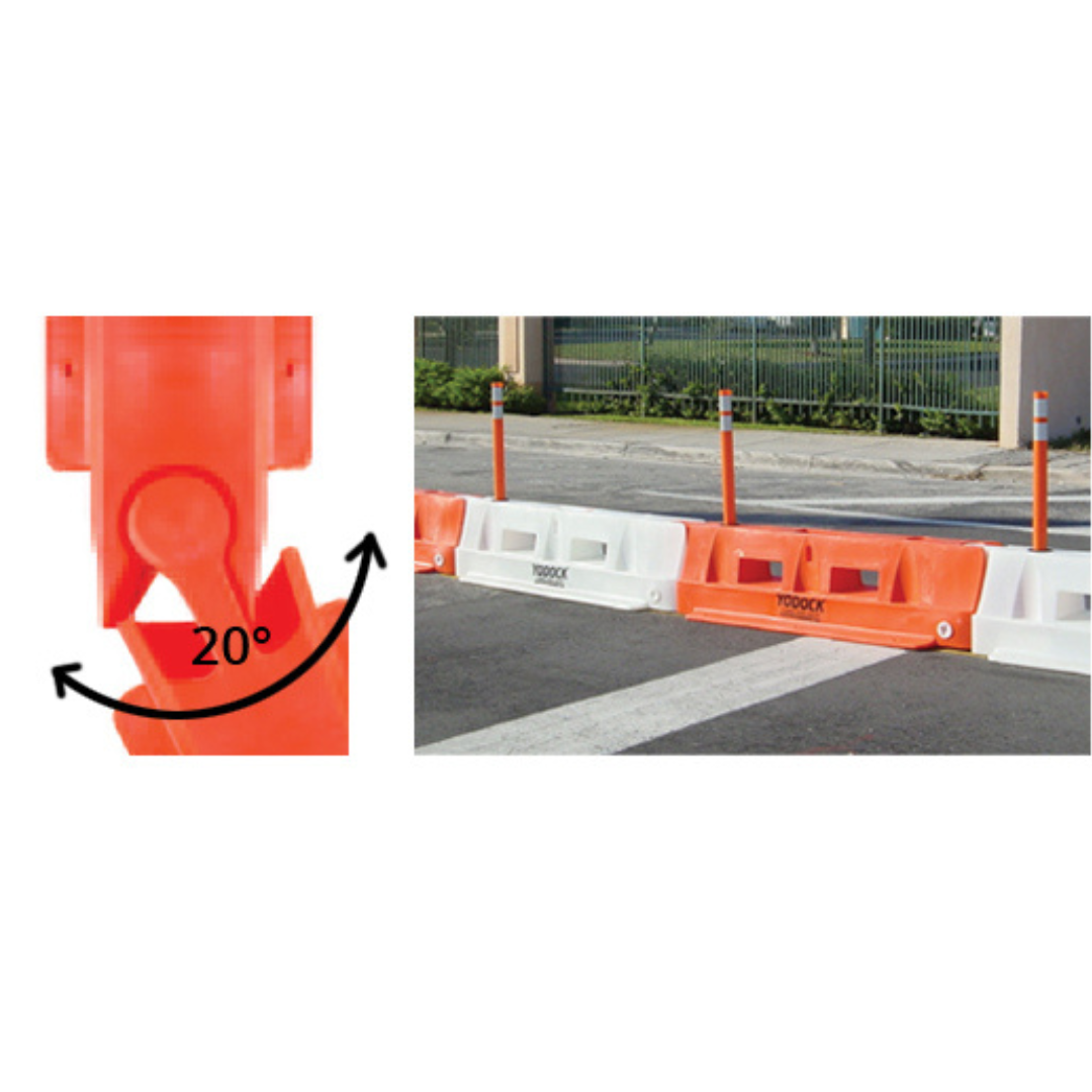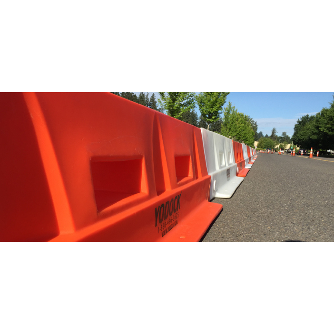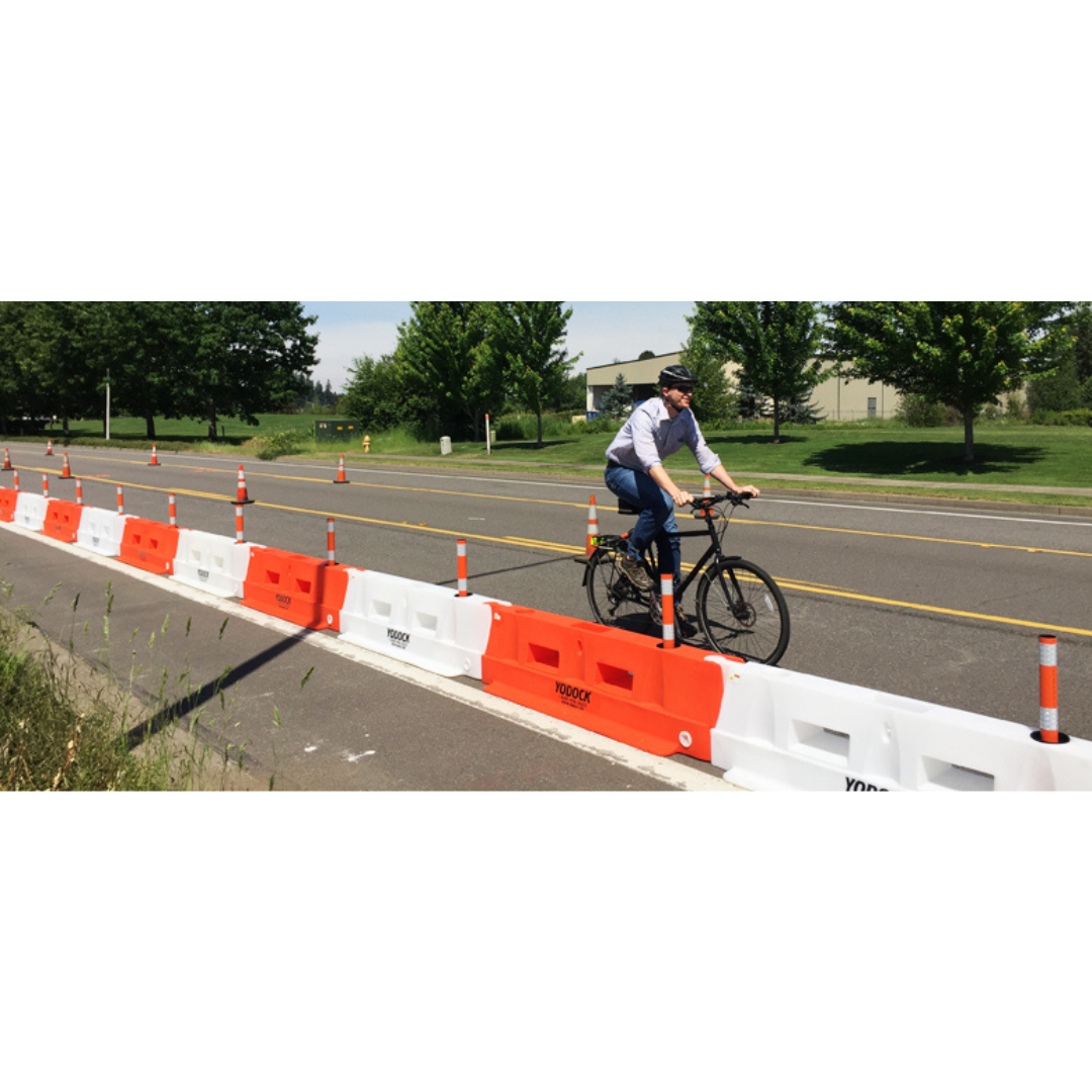 Our new Yodock 2001SL is Oregon DOT approved as a Bicycle Channelizing Device (BCD). The 2001SL (Slimline) barricade is a lightweight, low-profile channelizing device used for delineation of a work zone or gore area.The lower profile Slimline is ideal for multiple applications where vehicular delineation or pedestrian walkways are needed. The Slimline can be used empty or ballasted with water and the unique interlocking system allows for over 20° of articulation at each joint. Warning flags, lights, signs and more can be securely mounted to each unit. The Yodock 2001SL is has an FHWA acceptance as a Longitudinal Channelizing Device.