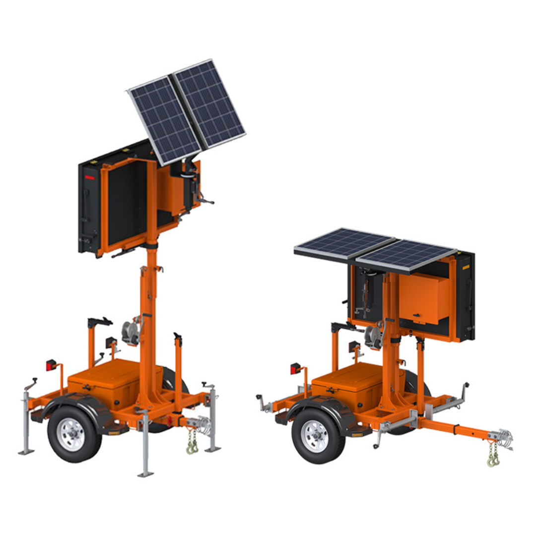 Ver-Mac's PCMS-4880 is a mini full-matrix trailer-mounted portable changeable message sign. It features the NTCIP-compliant V-Touch controller, Tilt-and-Rotate solar panels, and JamLogic fleet management software. PCMS-4880 is the most compact PCMS in Ver-Mac's line and provides a lot of flexibility with up to 5 lines of text and 18 characters per line. It’s the perfect model to use in urban areas, school zones, lower speed roadways, or for law enforcement, and special events.